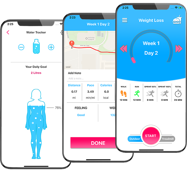 This app generates a personalized running program for weight loss. The weight loss plan is designed by top coaches to help users burn calories faster. The training program includes walking, running and sprinting. Additional features include water tracker, weight tracker, and body transformation.